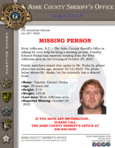 Thursday, October 30thOctober 29, 2025NewsOctober 29, 2025 Missing Person: Timothy Edward Rinka Missing Person: Timothy Edward Rinka
